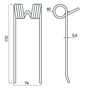 Ząb brony lewy 90X12 EA50 D16 L285(F) – ZAMIENNIK MASCHIO/KVE 27100209 – Maschio Gaspardo
